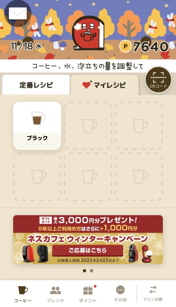 コーヒー入れるたびにポイントが貯まっていくんですよね。