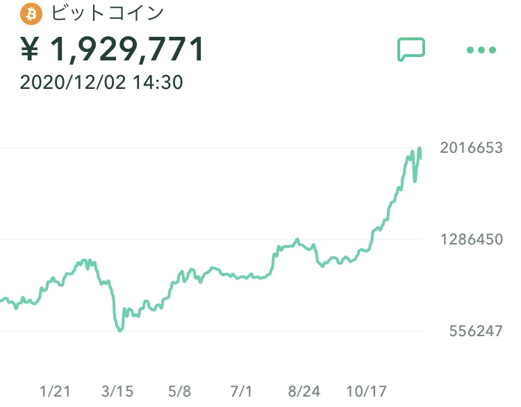 その後順調に回復し2020年12月2日現在1BTC=193万円。