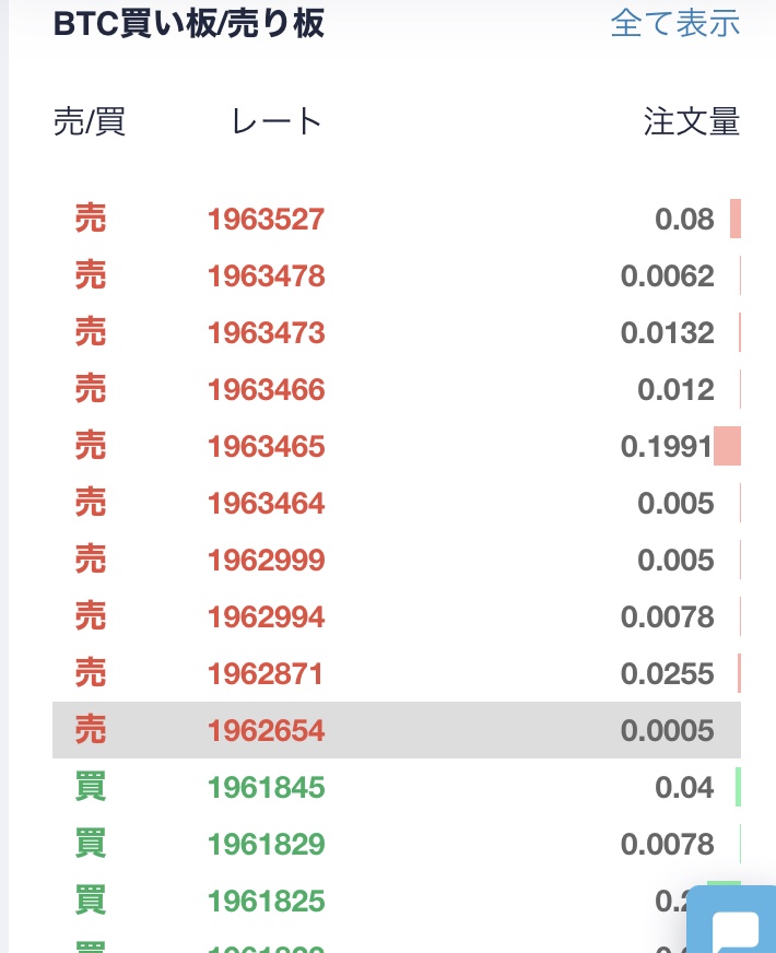 取引板にはビットコインを売りたい人と買いたい人が